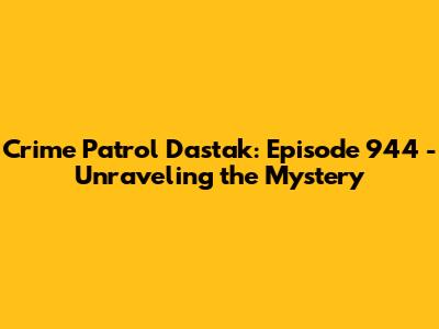 The show has a very strong following and has become a staple for true crime lovers in India, and it's also gaining traction with international audiences who are drawn to its unique and compelling format. One of the main goals of the show is to raise awareness about crimes in society and create a sense of empathy toward victims of crime. The show has a very strong following and has become a staple for true crime lovers in India, and it's also gaining traction with international audiences who are drawn to its unique and compelling format. If you're a fan of true crime and enjoy a suspenseful and thought-provoking show, then Episode 944 of Crime Patrol Dastak is a must-watch.
