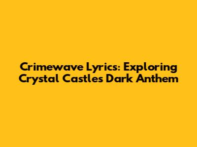 Crimewave Lyrics: Exploring Crystal Castles' Dark Anthem