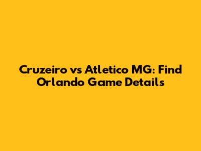 Cruzeiro Vs Atletico MG: Find Orlando Game Details