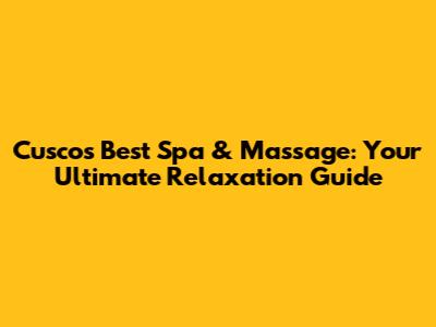 Cusco's Best Spa & Massage: Your Ultimate Relaxation Guide