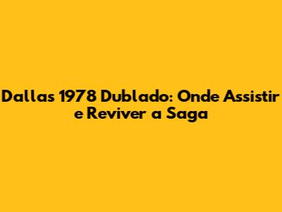 Onde Assistir Dallas 1978 Dublado: Opções e Plataformas