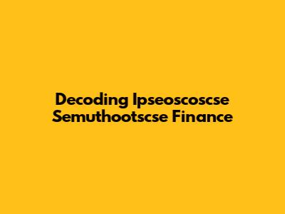 Decoding Ipseoscoscse Semuthootscse Finance
