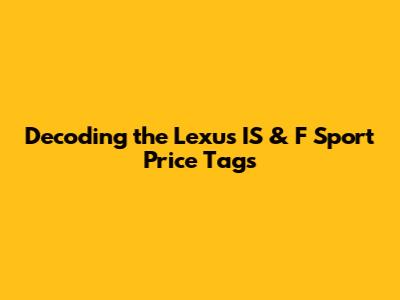 Decoding The Lexus IS & F Sport Price Tags