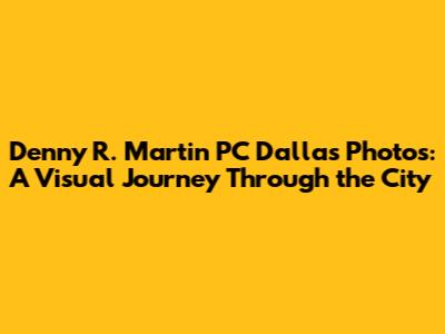 Hey there, photography enthusiasts and Dallas lovers! Ever wondered about Denny R. Martin PC Dallas photos and what makes them so special? Well, buckle up, because we're about to dive deep into the world of this talented photographer and explore the vibrant city of Dallas through his lens. We will uncover the nuances, styles and photographic elements that makes Denny R. Martin PC a favorite of many. This article is your ultimate guide. Get ready to explore the heart of Dallas, from its iconic landmarks to its hidden gems, all through the incredible work of Denny R. Martin PC.