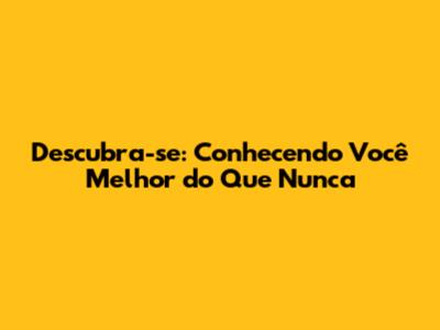Descubra-se: Conhecendo Você Melhor Do Que Nunca