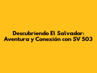 Descubriendo El Salvador: Aventura Y Conexión Con SV 503