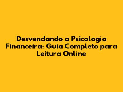 Desvendando A Psicologia Financeira: Guia Completo Para Leitura Online
