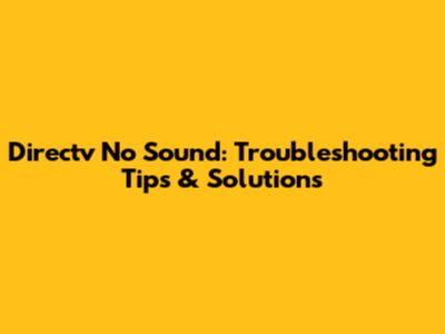 Directv No Sound: Troubleshooting Tips & Solutions