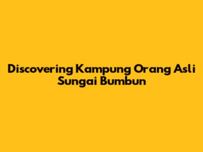 Let's dive into the heart of Kampung Orang Asli Sungai Bumbun, a fascinating and culturally rich settlement. This article will explore everything that makes this village unique, from its history and traditions to the daily lives of its inhabitants. Whether you're a cultural enthusiast, a traveler seeking authentic experiences, or simply curious about different ways of life, get ready to discover the wonders of Sungai Bumbun.