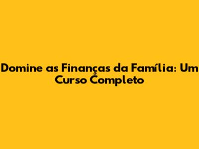 Domine As Finanças Da Família: Um Curso Completo