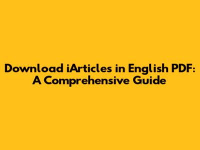 Download IArticles In English PDF: A Comprehensive Guide