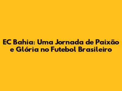 O Esporte Clube Bahia é um clube de tradição, com uma história rica em conquistas e uma torcida apaixonada. O Tricolor de Aço representa a Bahia e o orgulho do povo baiano. O futuro do Bahia é promissor, com a união da diretoria, jogadores e torcedores, que trabalham juntos em busca de um objetivo comum: a vitória. O Bahia está sempre em busca de novos talentos e de novas conquistas, mostrando que a paixão pelo futebol é um sentimento que nunca se apaga.