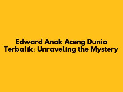 In conclusion, Edward Anak Aceng is more than just a character in Dunia Terbalik; he is a symbol of the show's heart and humor. His journey resonates with audiences, making him a beloved figure in the series. Whether it's his comedic timing, his heartfelt relationships, or his commitment to his community, Edward's presence enriches the storyline and keeps viewers coming back for more.