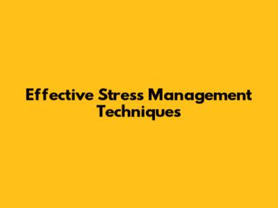 Effective Stress Management Techniques