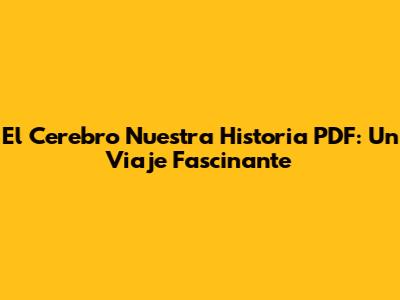 El Cerebro Nuestra Historia PDF: Un Viaje Fascinante