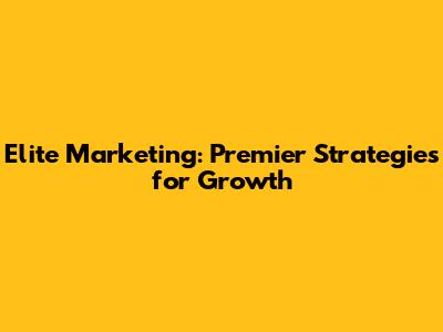 Elite Marketing: Premier Strategies For Growth
