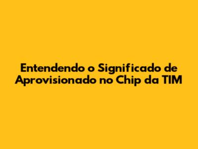 Entendendo O Significado De Aprovisionado No Chip Da TIM