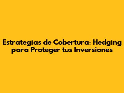 Estrategias De Cobertura: Hedging Para Proteger Tus Inversiones
