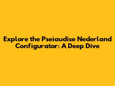 Explore The Pseiaudise Nederland Configurator: A Deep Dive
