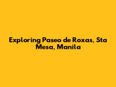Let's dive into the heart of Manila and explore three of its vibrant spots: Paseo de Roxas, Sta. Mesa, and the city of Manila itself. Each location has its own unique charm, history, and attractions. Whether you're a local looking to rediscover your city or a tourist eager to explore, this guide will give you an in-depth look at what makes these places special.