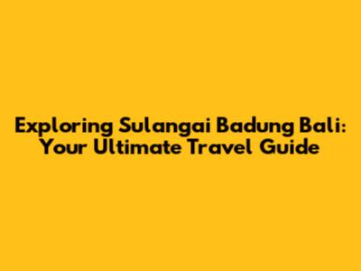 Exploring Sulangai Badung Bali: Your Ultimate Travel Guide