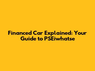 Financed Car Explained: Your Guide To PSEiwhatse
