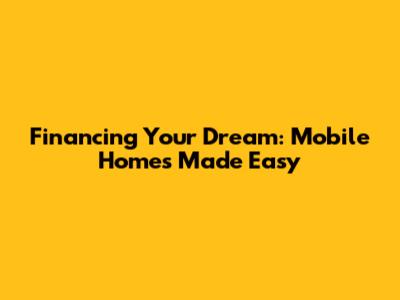 Financing Your Dream: Mobile Homes Made Easy