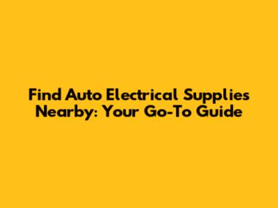 Find Auto Electrical Supplies Nearby: Your Go-To Guide