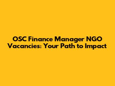 Find Your Dream Role: OSC Finance Manager NGO Openings