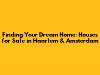 Finding Your Dream Home: Houses For Sale In Haarlem & Amsterdam