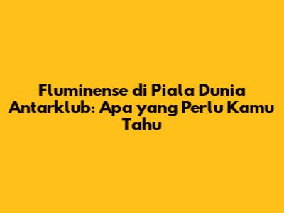 Fluminense Di Piala Dunia Antarklub: Apa Yang Perlu Kamu Tahu