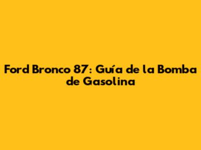 Ford Bronco 87: Guía De La Bomba De Gasolina