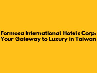 Hey guys! Ever dreamt of experiencing Taiwan in the lap of luxury? Well, Formosa International Hotels Corp is your answer! This isn't just about finding a place to crash; it's about immersing yourself in Taiwanese hospitality and elegance. We're diving deep into what makes Formosa International Hotels a top choice for travelers seeking the best Taiwan has to offer. So, buckle up and let's explore!