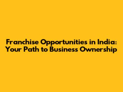 Franchise Opportunities In India: Your Path To Business Ownership