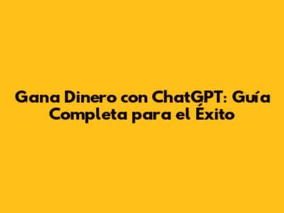 Gana Dinero Con ChatGPT: Guía Completa Para El Éxito