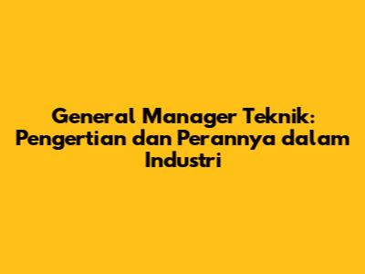 General Manager Teknik: Peran Krusial Dalam Industri
