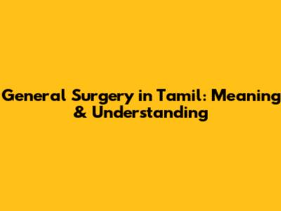 General Surgery In Tamil: Meaning & Understanding