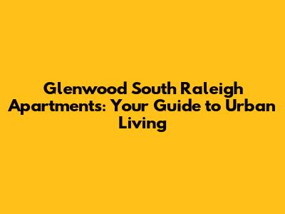 Glenwood South Raleigh Apartments: Your Guide To Urban Living