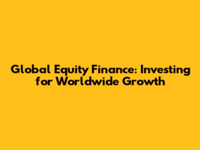 Global Equity Finance: Investing For Worldwide Growth