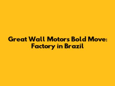 Great Wall Motor's Bold Move: Factory In Brazil