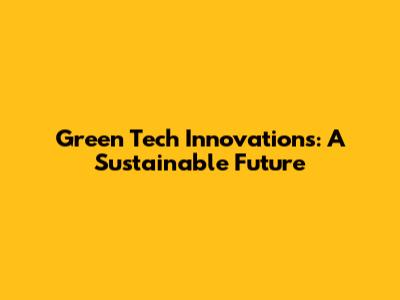 Green Tech Innovations: A Sustainable Future