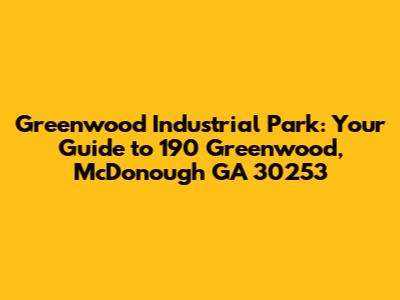 Hey everyone! Are you looking for a place in McDonough, GA? Or maybe you're just curious about what's happening at 190 Greenwood Industrial Park? Well, you've come to the right place! This guide dives deep into the heart of this industrial hub, covering everything from its location and history to the businesses that call it home. Get ready for a detailed look at 190 Greenwood Industrial Park, and all it offers!