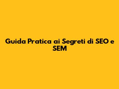 Ragazzi, parliamoci chiaro: nel mondo digitale di oggi, farsi trovare online è praticamente fondamentale per qualsiasi attività, piccola o grande che sia. Se non siete visibili, praticamente non esistete per un sacco di potenziali clienti. È qui che entrano in gioco due bestie sacre: la SEO (Search Engine Optimization) e la SEM (Search Engine Marketing). Ma cosa sono esattamente queste sigle che sentiamo ovunque e come possiamo usarle al meglio per far decollare la nostra presenza online? In questo articolo, vi guiderò attraverso i concetti chiave, i trucchi del mestiere e le strategie più efficaci per dominare i risultati dei motori di ricerca. Non preoccupatevi se siete alle prime armi, vi spiegherò tutto in modo semplice e diretto, senza paroloni inutili. Preparatevi a scoprire come far sì che i vostri contenuti vengano trovati, cliccati e apprezzati. Immaginate di avere un negozio fisico in una via secondaria e poi di spostarlo nella via principale del centro: ecco, questa è la potenza di una buona strategia SEO e SEM. Si tratta di rendere il vostro sito web, i vostri prodotti o i vostri servizi facilmente scopribili da chi li sta cercando attivamente. Parleremo di come ottimizzare il vostro sito per i motori di ricerca come Google (SEO) e di come utilizzare la pubblicità a pagamento per ottenere visibilità immediata (SEM). Alla fine di questa lettura, avrete le idee molto più chiare e sarete pronti a mettere in pratica questi consigli per vedere i vostri numeri crescere. Siete pronti a iniziare questa avventura nel mondo dell'ottimizzazione per i motori di ricerca?