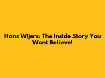 Hans Wijers: The Inside Story You Won't Believe!