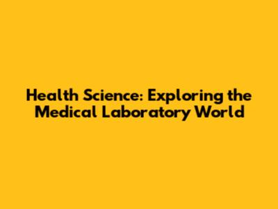 Health Science: Exploring The Medical Laboratory World