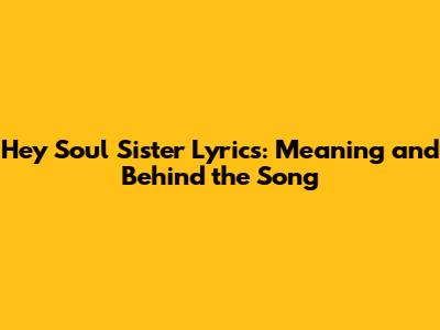 Hey Soul Sister Lyrics: Meaning And Behind The Song