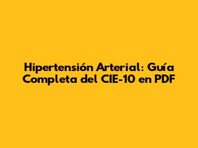Hipertensión Arterial: Guía Completa Del CIE-10 En PDF