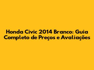 Honda Civic 2014 Branco: Guia Completo De Preços E Avaliações
