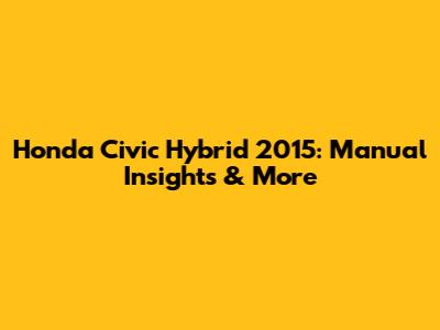 Honda Civic Hybrid 2015: Manual Insights & More