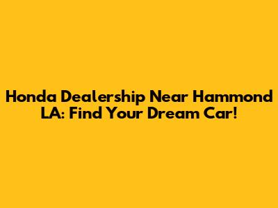Honda Dealership Near Hammond LA: Find Your Dream Car!